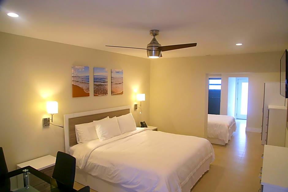 This unit features two divided rooms with an ocean view. A private bathroom with a shower and a full kitchen are also included.